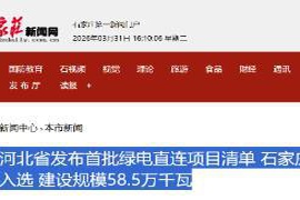 河北省发布首批绿电直连项目清单 石家庄一项目入选 建设规模58.5万千瓦