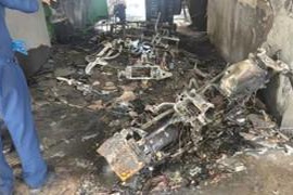 凌晨萧山一居民楼架空层起火 烧了多辆电瓶车