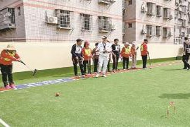 老有所乐 马垅社一停车楼屋顶改造成门球场
